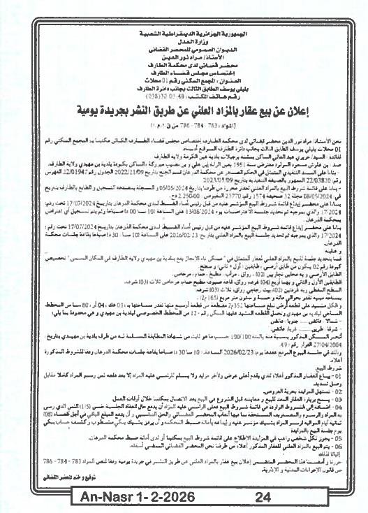 Il sera procédé à la vente au plus offrant et dernier enchérisseur le :