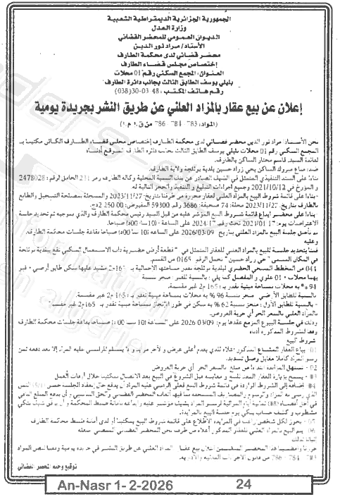 | Paru dans le journal : النصر | |