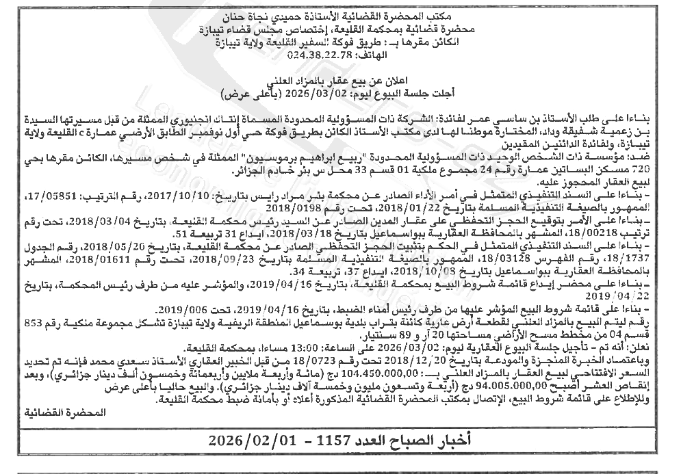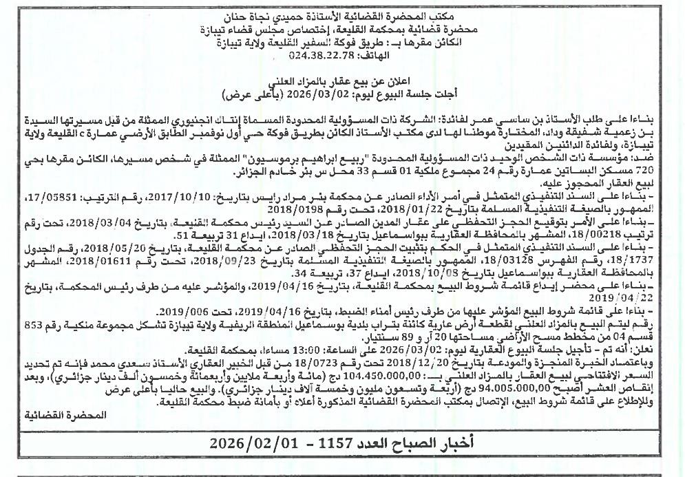 Il sera procédé à la vente au plus offrant et dernier enchérisseur le :
