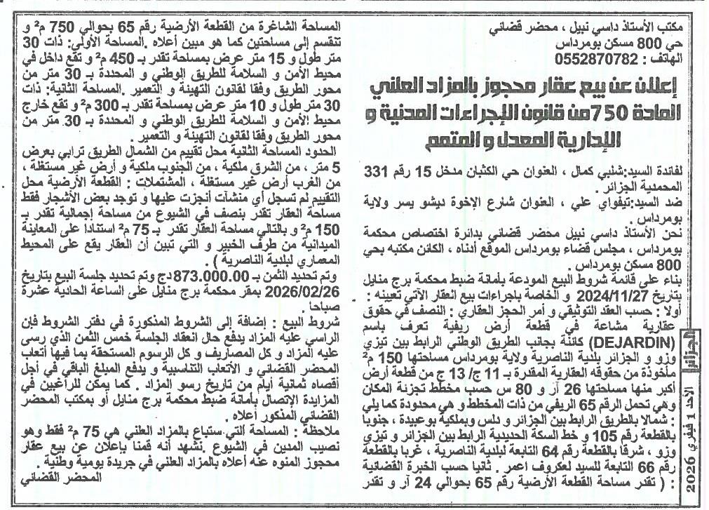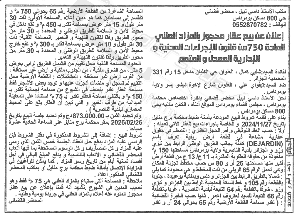 Il sera procédé à la vente au plus offrant et dernier enchérisseur le :