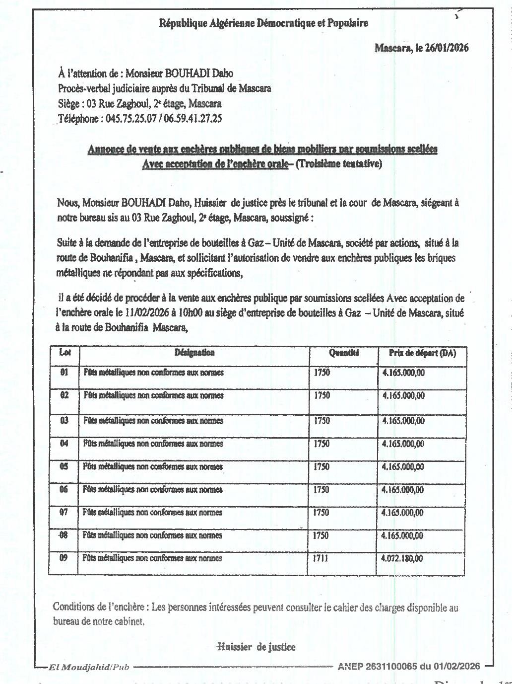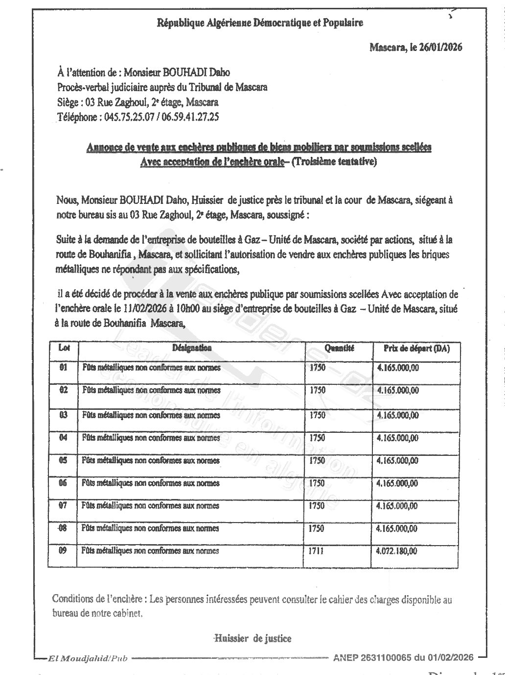 Il sera procédé à la vente au plus offrant et dernier enchérisseur le :