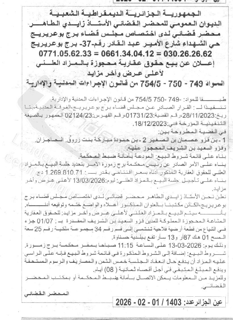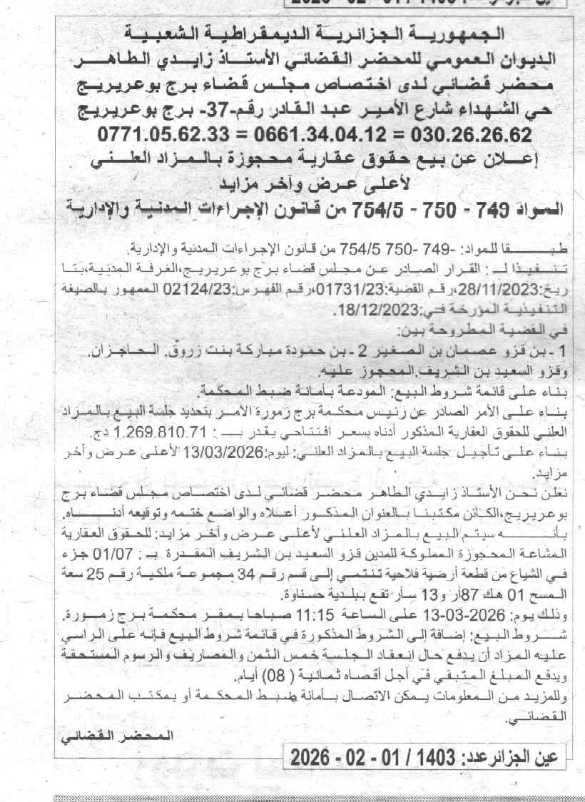 | Paru dans le journal : عين الجزائر | |