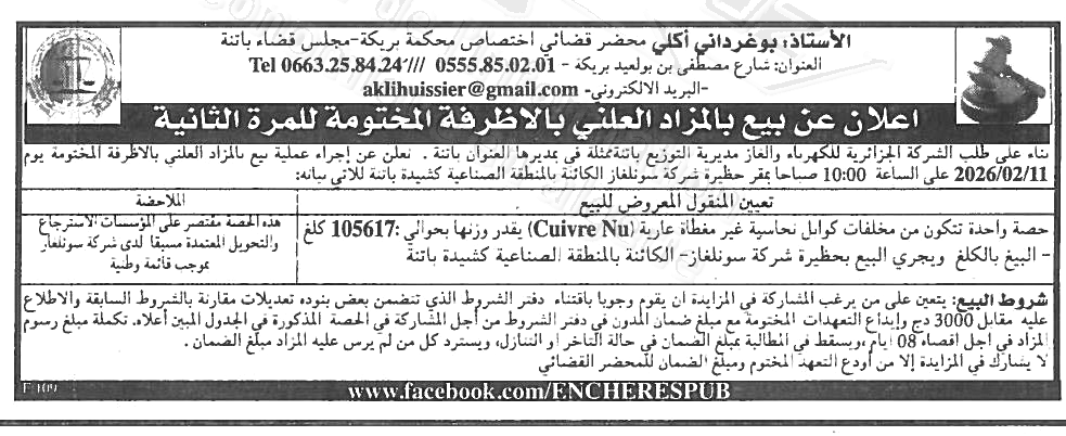 | Objet: Vente de cuivre nu 105617KG | |