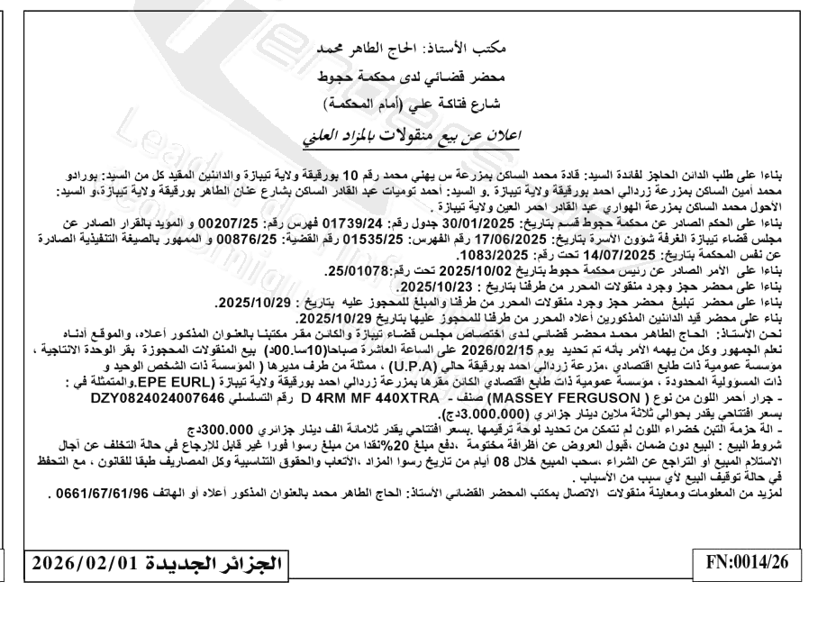 Il sera procédé à la vente au plus offrant et dernier enchérisseur le :