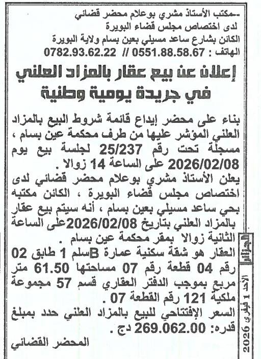 | Paru dans le journal : الجزائر | |