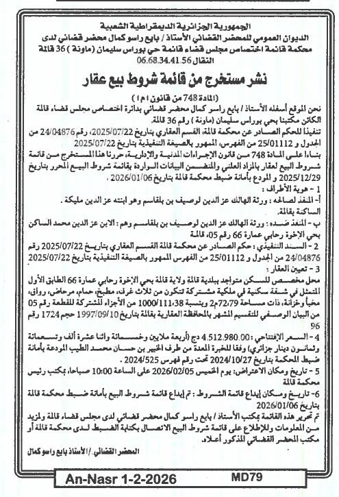 Il sera procédé à la vente au plus offrant et dernier enchérisseur le :