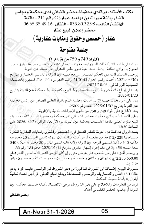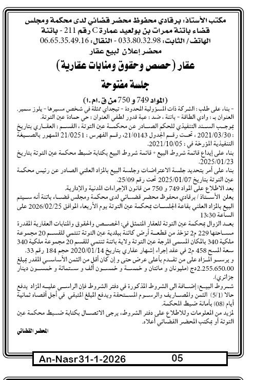 | Paru dans le journal : النصر | |