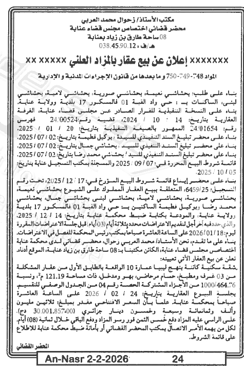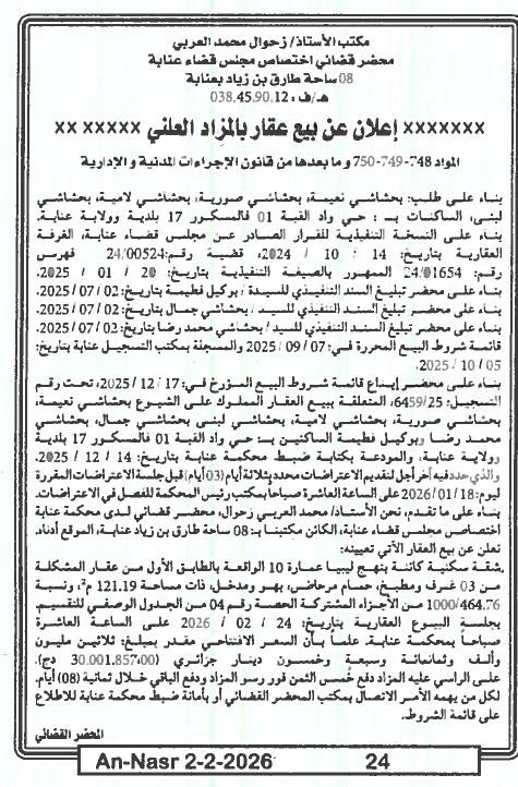 | Paru dans le journal : النصر | |
