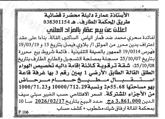 Il sera procédé à la vente au plus offrant et dernier enchérisseur le :