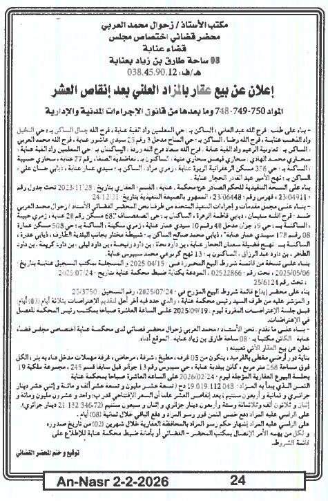 | Paru dans le journal : النصر | |