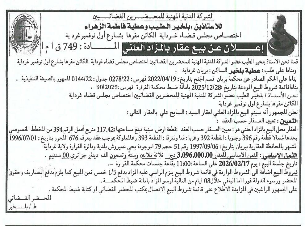 | Objet: Vente d'un immobiliers | |