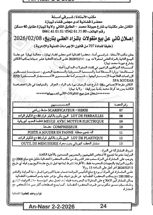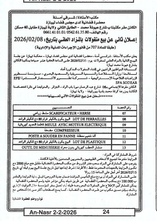 | Paru dans le journal : النصر | |