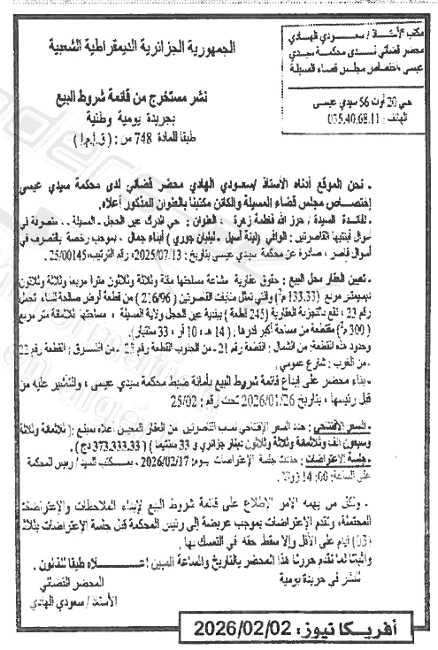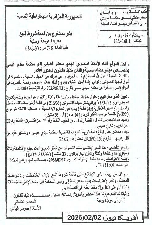 Il sera procédé à la vente au plus offrant et dernier enchérisseur le :