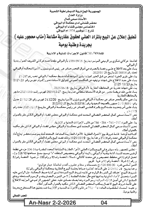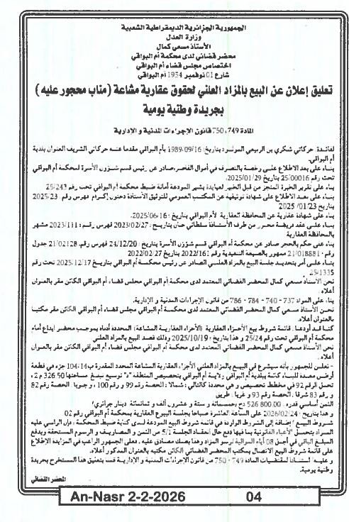 Il sera procédé à la vente au plus offrant et dernier enchérisseur le :
