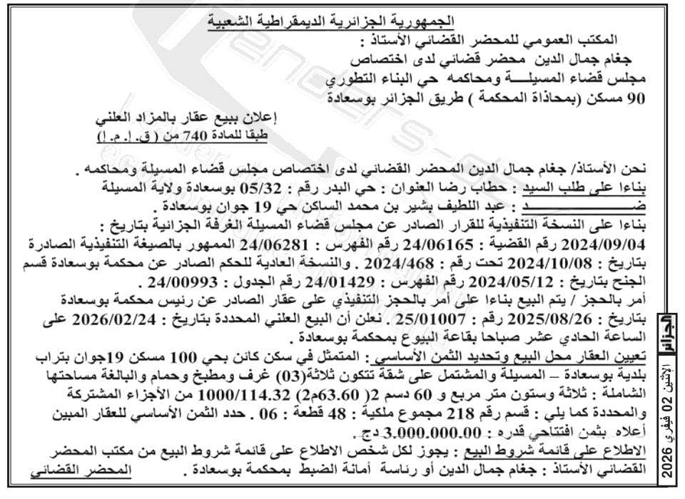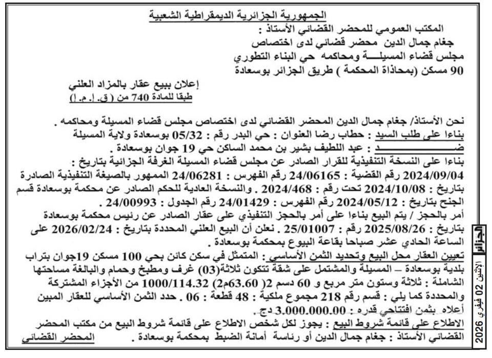 Il sera procédé à la vente au plus offrant et dernier enchérisseur le :