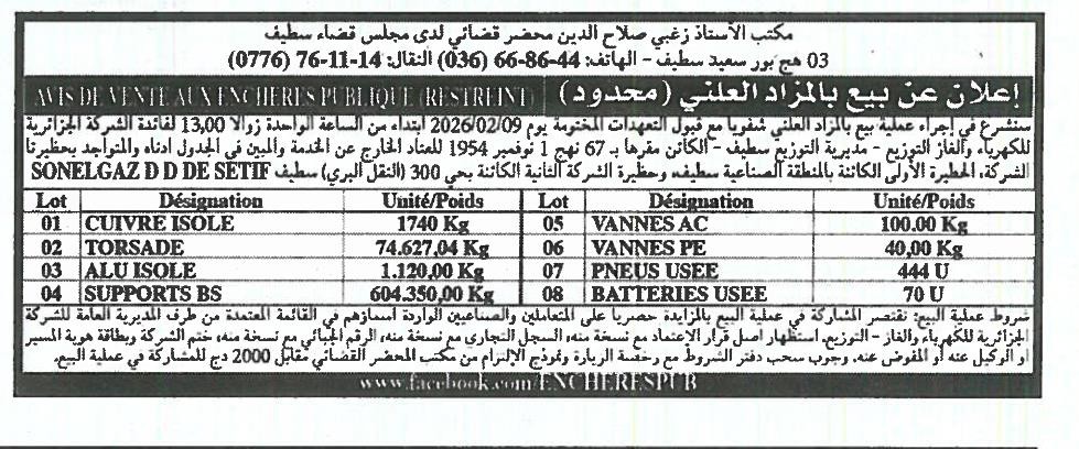 | Objet: Vente divers équipements et matériels | |