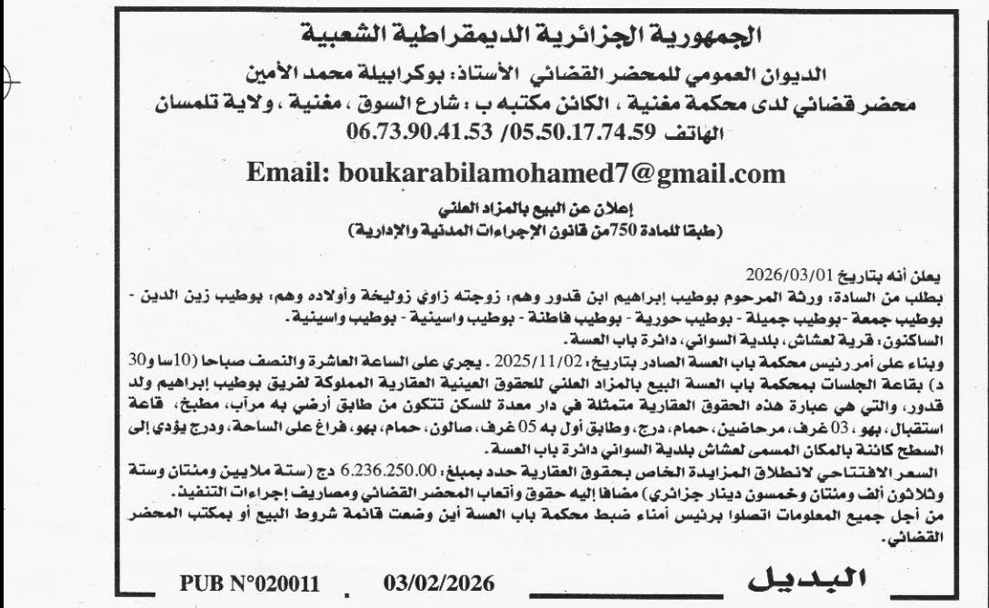 | Date Publication : 03/02/2026 | |