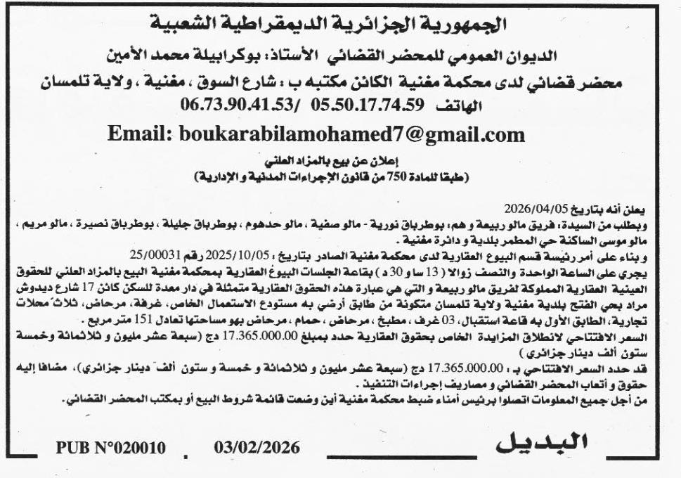 | Date Publication : 03/02/2026 | |