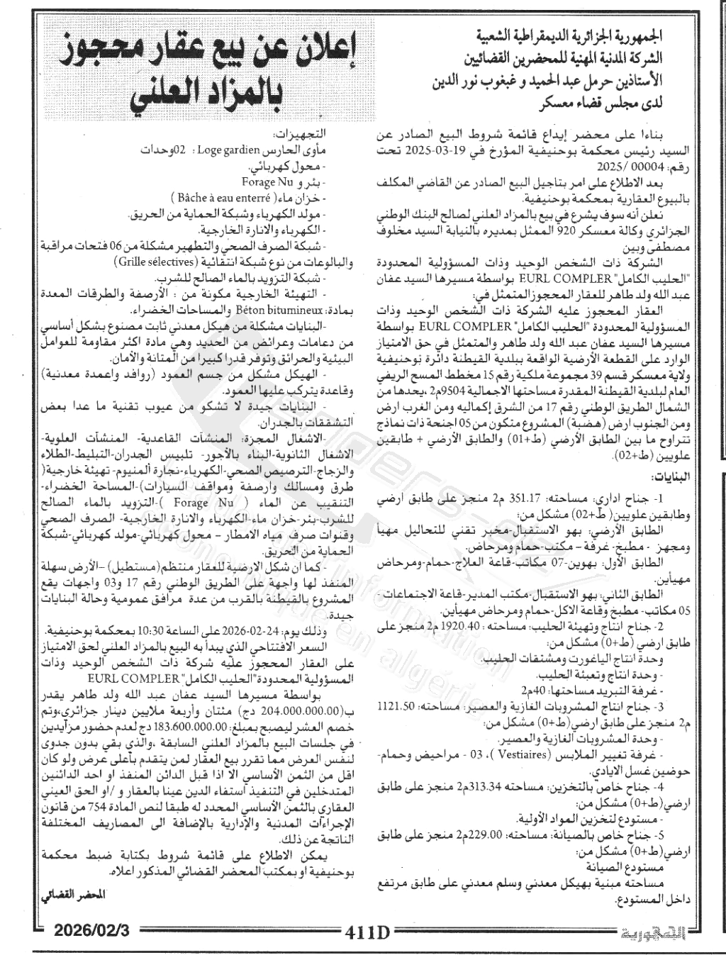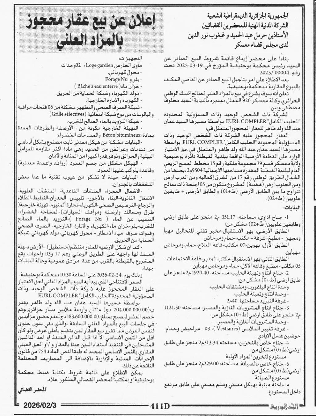 Il sera procédé à la vente au plus offrant et dernier enchérisseur le :