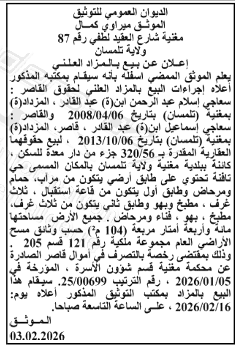 Il sera procédé à la vente au plus offrant et dernier enchérisseur le :