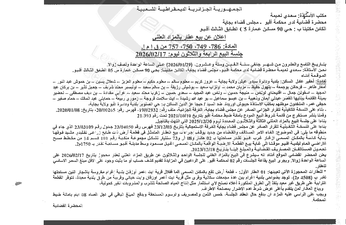Il sera procédé à la vente au plus offrant et dernier enchérisseur le :