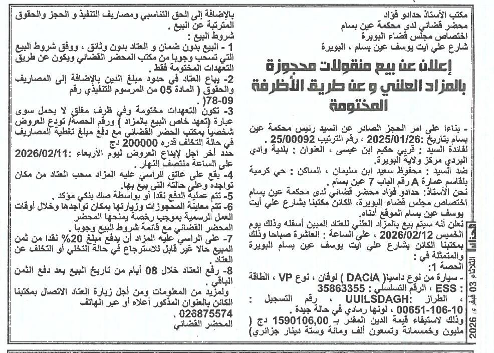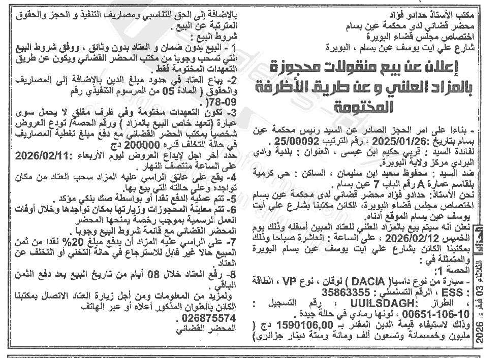 Il sera procédé à la vente au plus offrant et dernier enchérisseur le :