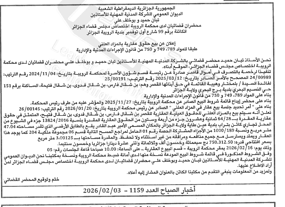 Il sera procédé à la vente au plus offrant et dernier enchérisseur le :