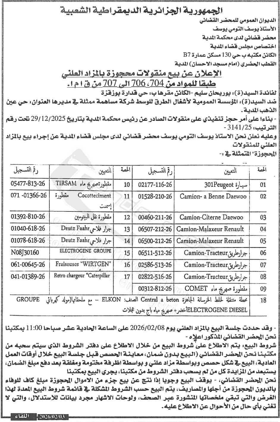 Il sera procédé à la vente au plus offrant et dernier enchérisseur le :