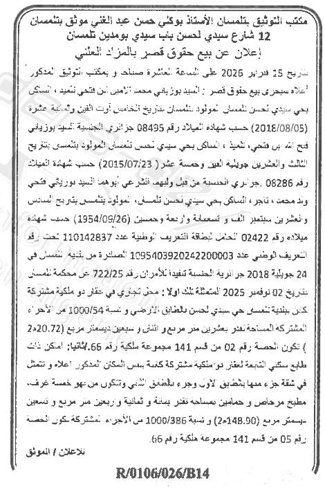 | Objet: Vente d'un immobilier | |