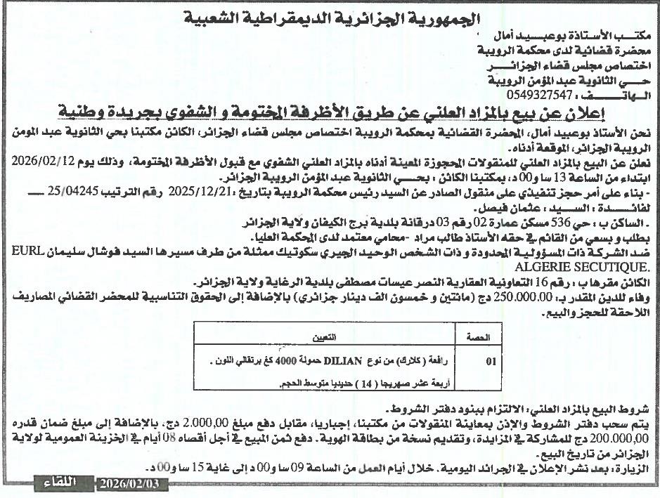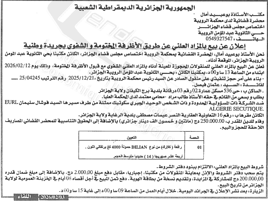 Il sera procédé à la vente au plus offrant et dernier enchérisseur le :