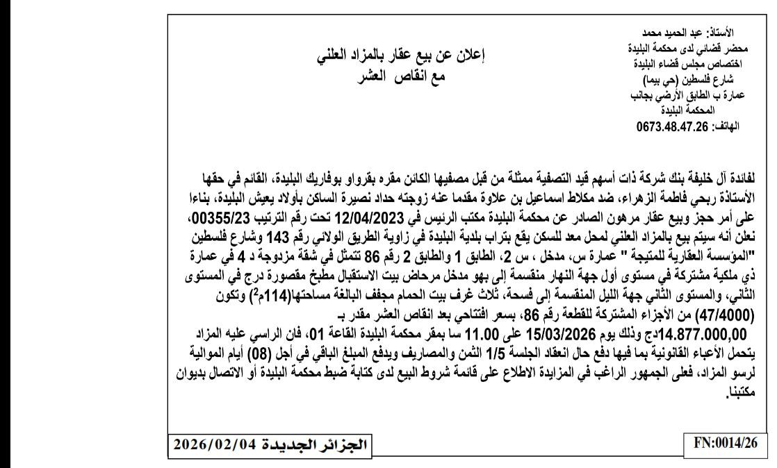 | Paru dans le journal : الجزائر الجديدة | |