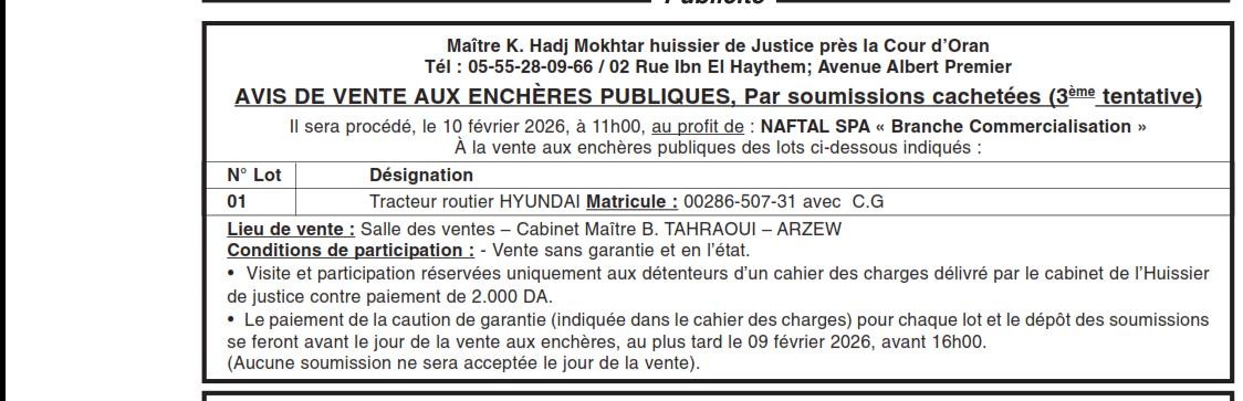 | Objet: Vente d'un tracteur routier | |