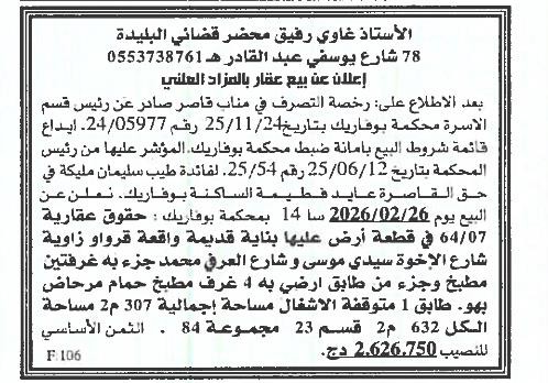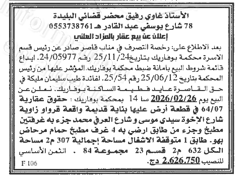 Il sera procédé à la vente au plus offrant et dernier enchérisseur le :