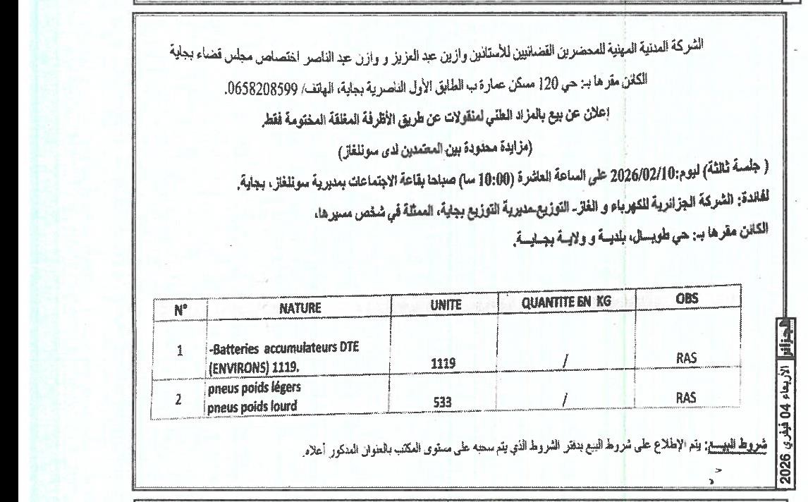 | Paru dans le journal : الجزائر | |