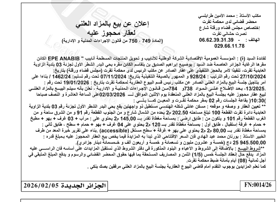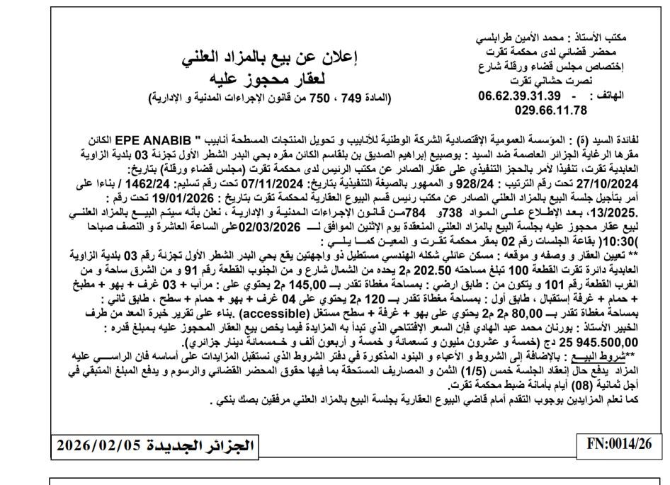 Il sera procédé à la vente au plus offrant et dernier enchérisseur le :