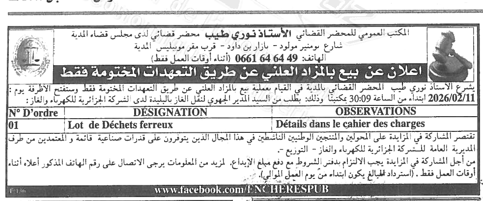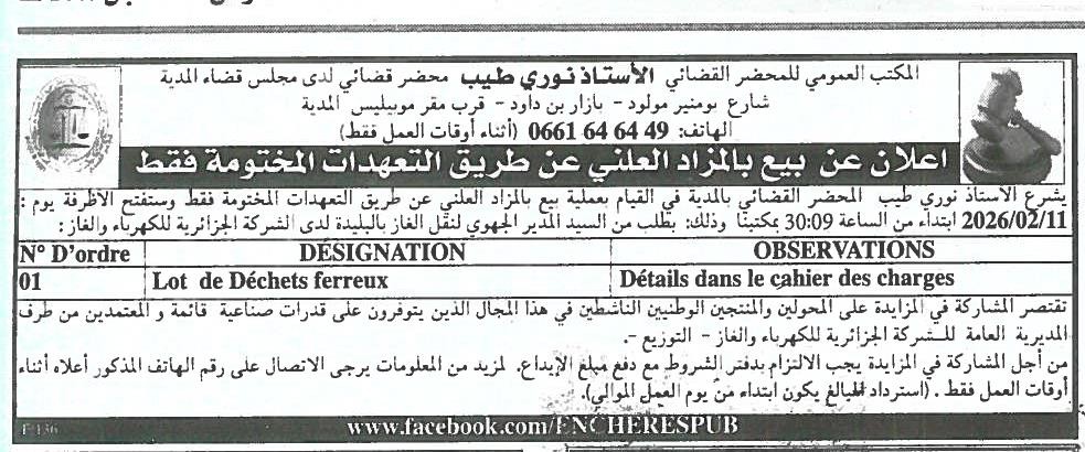 | Objet: Vente de déchets ferreux | |