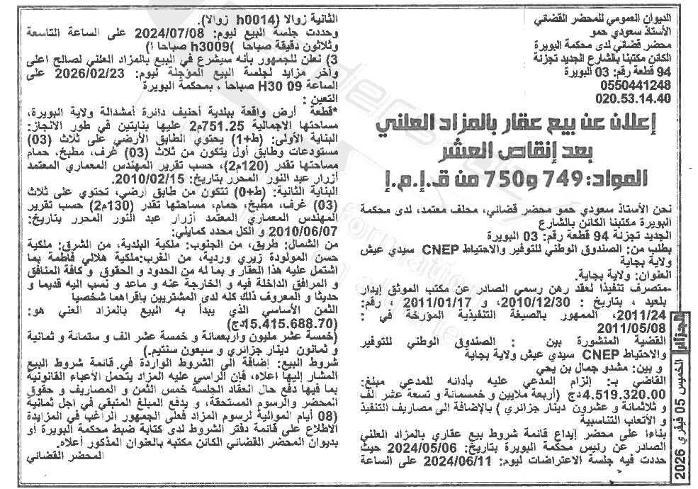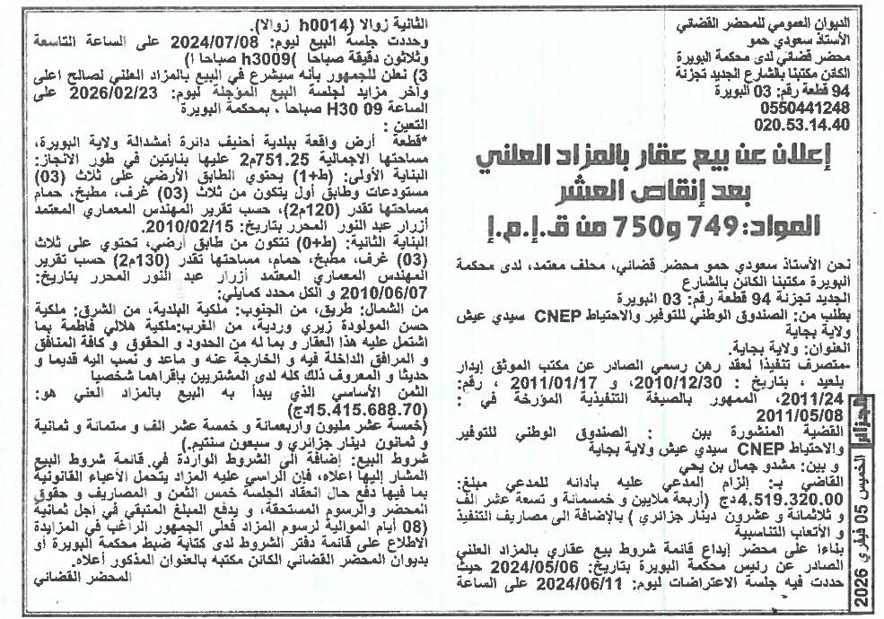 Il sera procédé à la vente au plus offrant et dernier enchérisseur le :