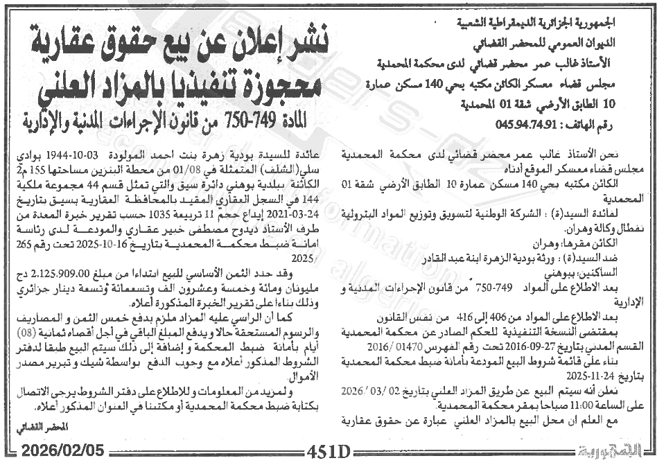 Il sera procédé à la vente au plus offrant et dernier enchérisseur le :