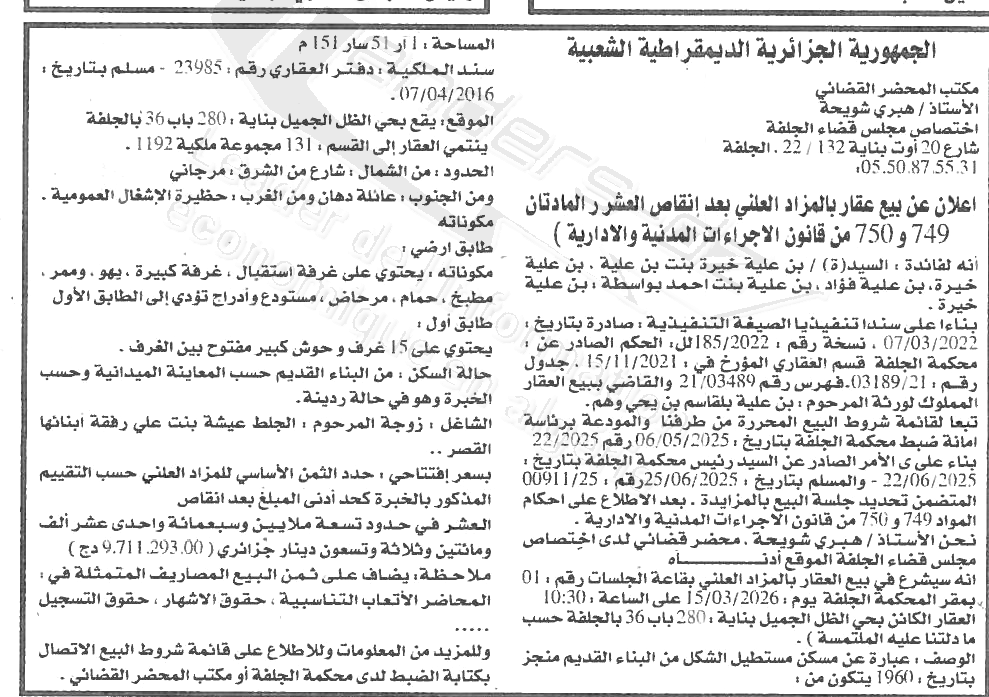 | Objet: Vente d'un immobiliers | |