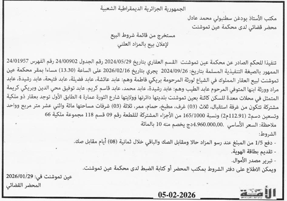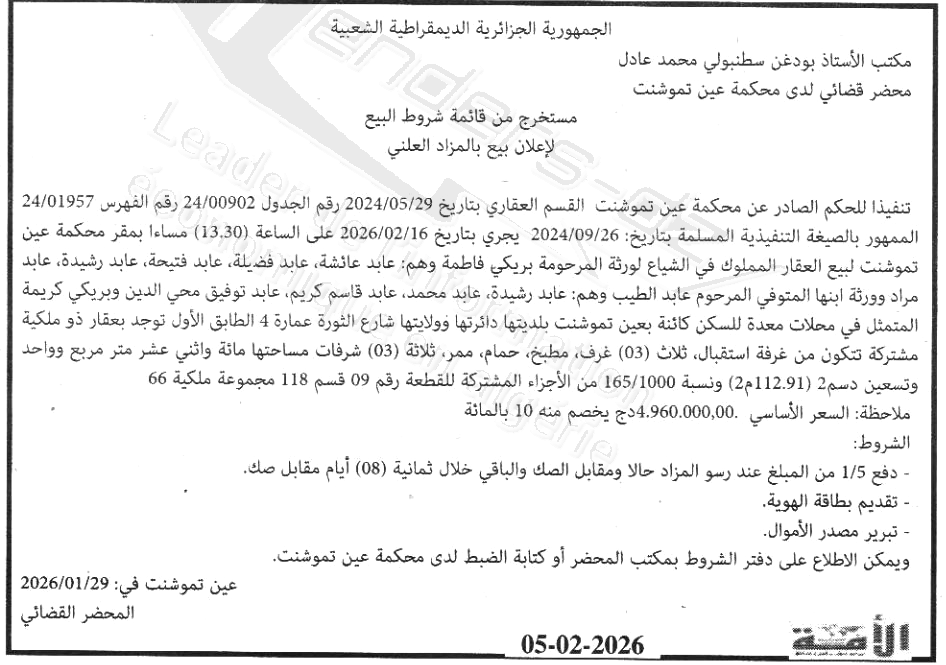 Il sera procédé à la vente au plus offrant et dernier enchérisseur le :