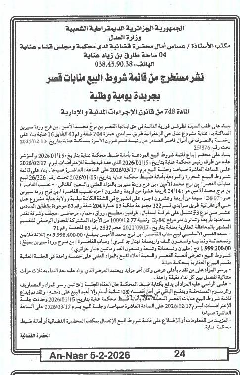 | Paru dans le journal : النصر | |