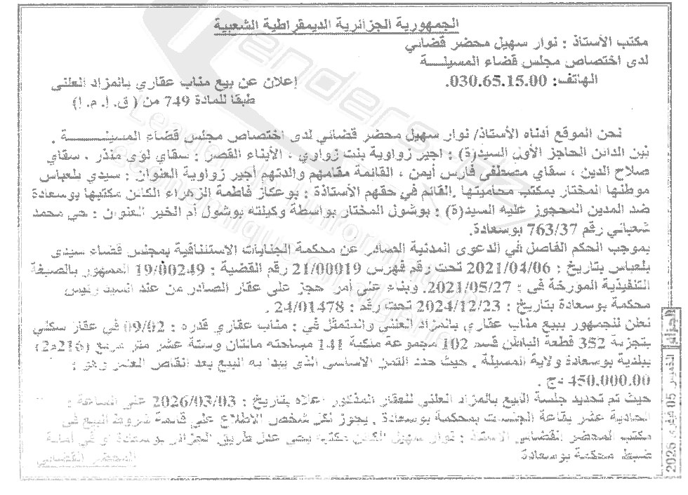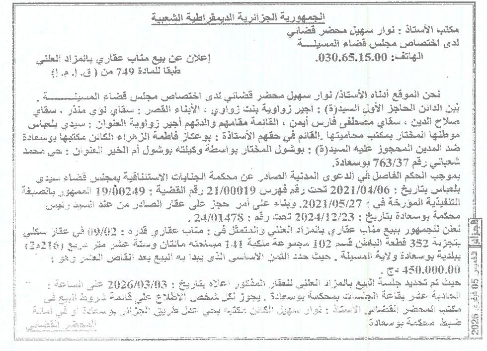 Il sera procédé à la vente au plus offrant et dernier enchérisseur le :