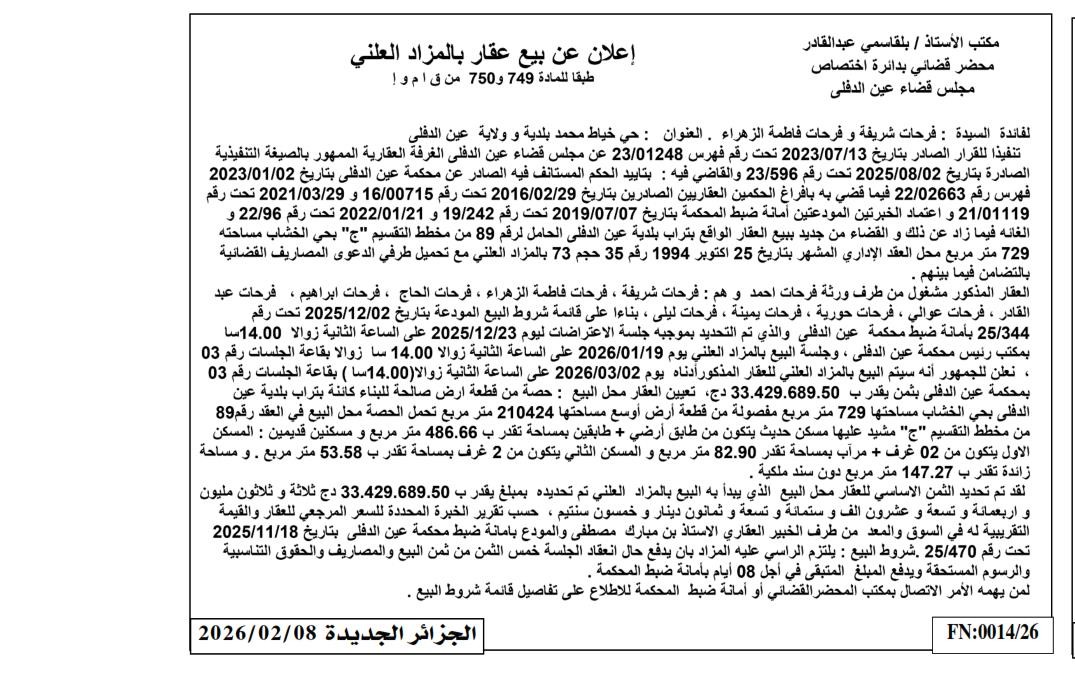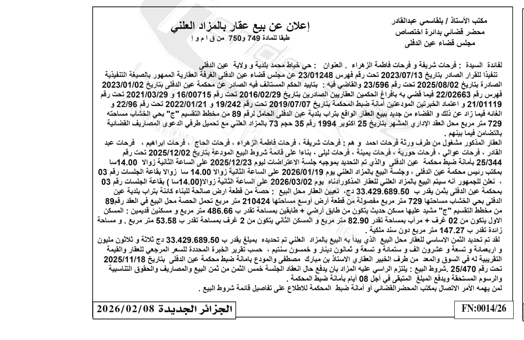 Il sera procédé à la vente au plus offrant et dernier enchérisseur le :
