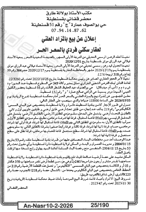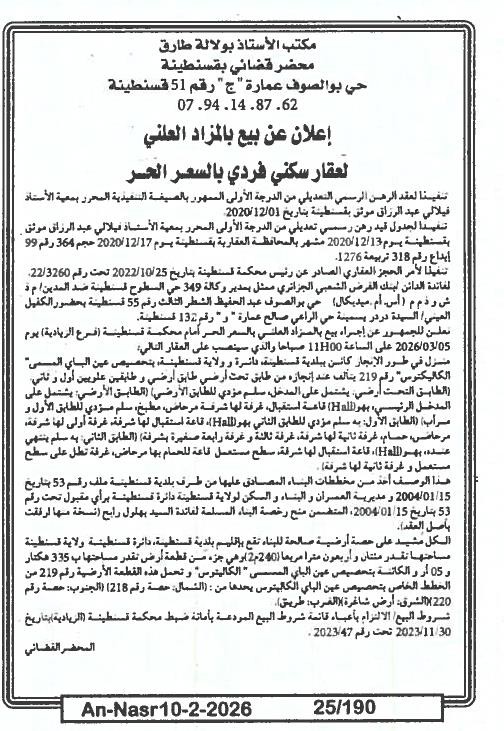 Il sera procédé à la vente au plus offrant et dernier enchérisseur le :