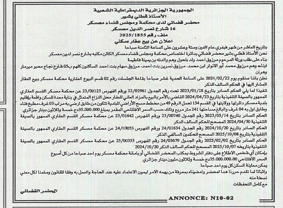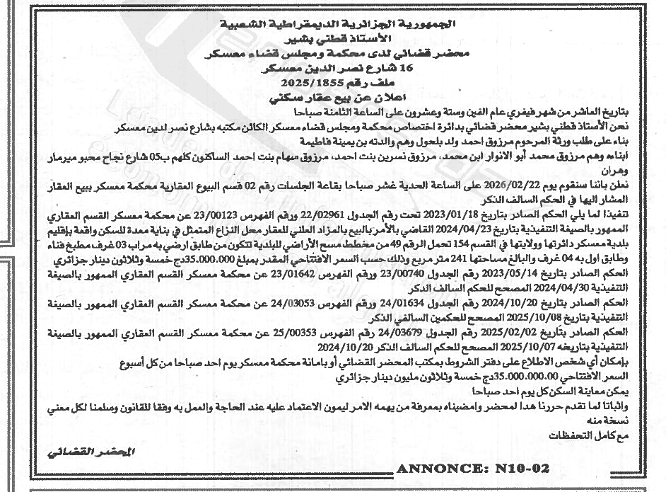 Il sera procédé à la vente au plus offrant et dernier enchérisseur le :