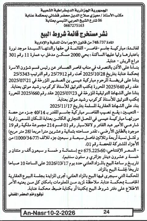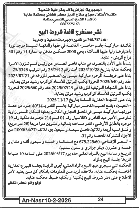 | Paru dans le journal : النصر | |
