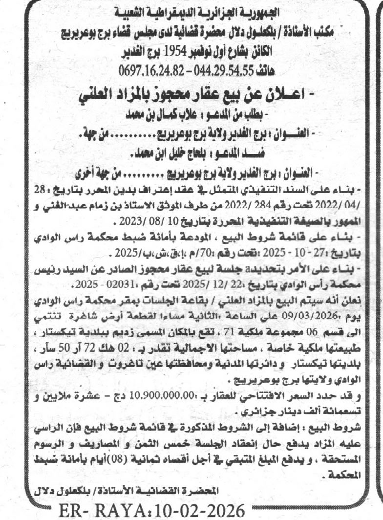 Il sera procédé à la vente au plus offrant et dernier enchérisseur le :