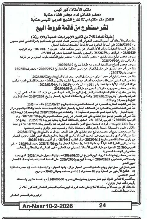 | Paru dans le journal : النصر | |