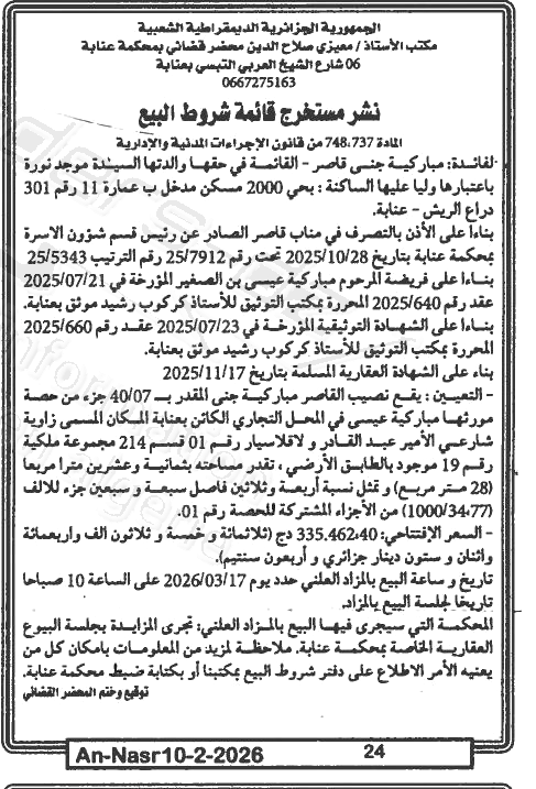 | Paru dans le journal : النصر | |