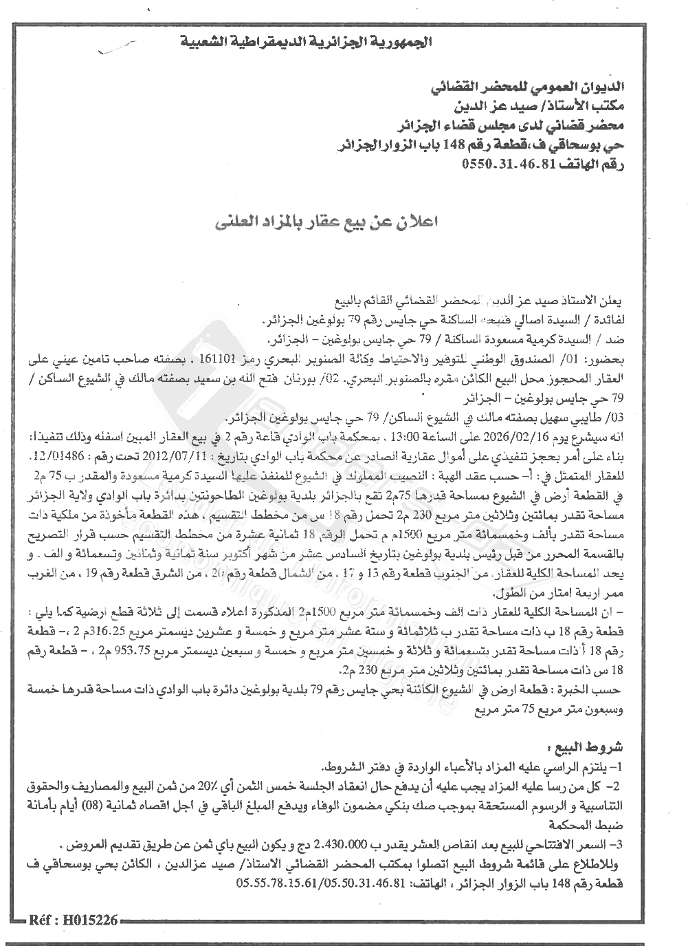 Il sera procédé à la vente au plus offrant et dernier enchérisseur le :